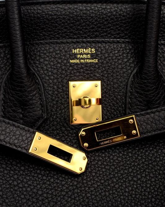 Tasche Hermès Birkin 25 mit Goldbeschlägen in Schwarz