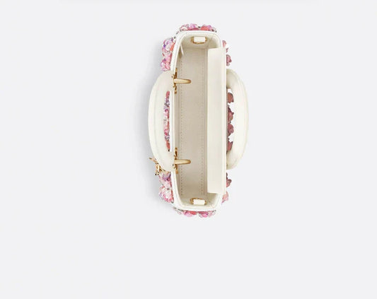 Tasche Dior Lady D-Joy Micro – Weißes Kalbsleder mit Rosa Blumenstickerei & Strass