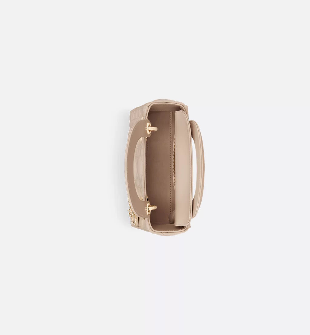 Die Lady Dior Tasche verkörpert die Vision der Maison von Eleganz und Schönheit. Raffiniert und zeitlos ist dieses Modell aus puderbeigem Lammleder mit Cannage-Steppnähten gefertigt, die die legendäre, sofort erkennbare Steppoptik erzeugen, während D.I.O.R.-Anhänger mit Strass das Design schmücken. Mit einem abnehmbaren Ketten-Schulterriemen eignet sich diese Lady Dior Mini Tasche ideal für Abendveranstaltungen und kann in der Hand oder als Crossbody getragen werden.