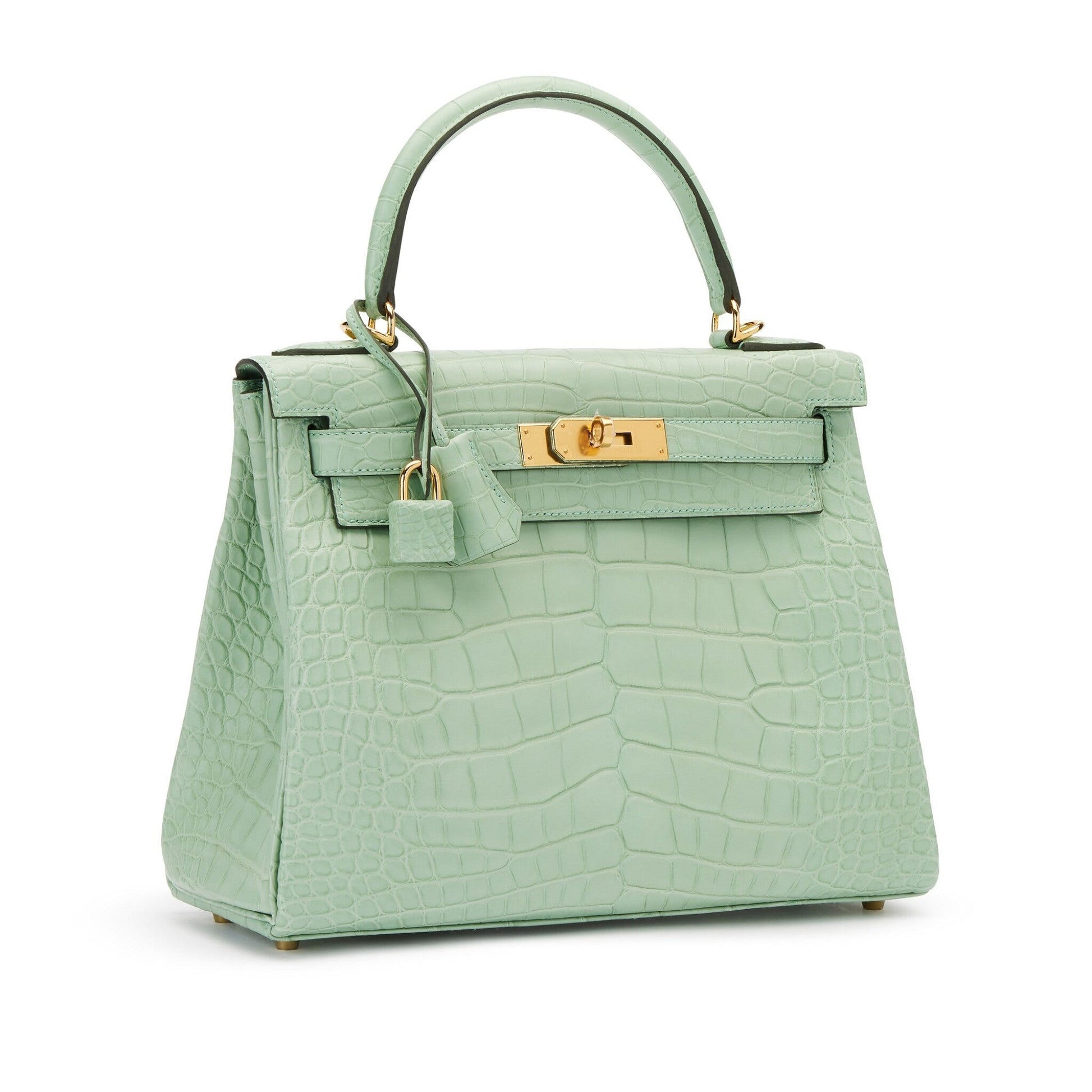 Hermès Kelly 28 Retourne aus mattem Alligatorleder in der Farbe Vert d’Eau mit goldfarbener Hardware, 2021.